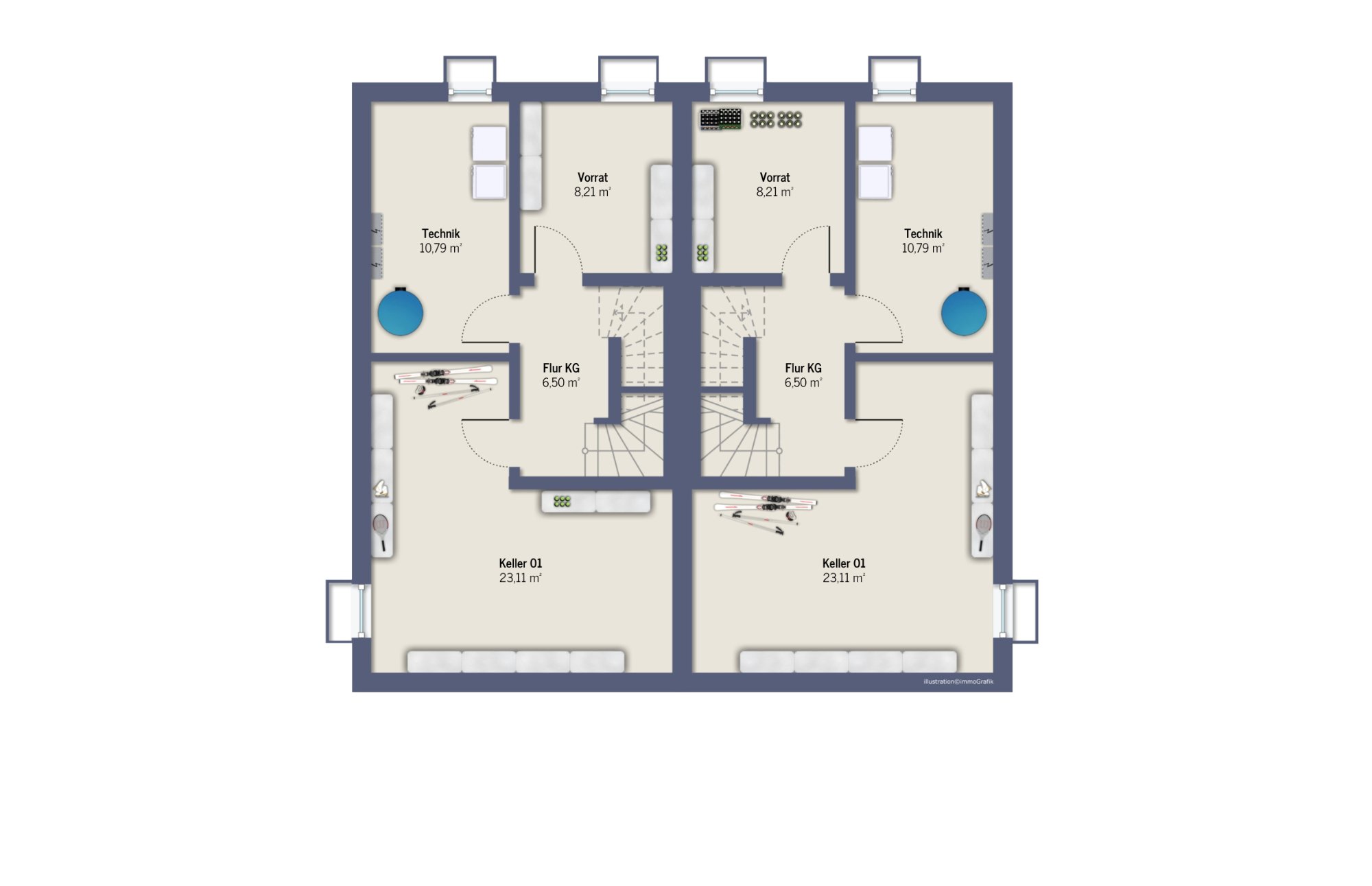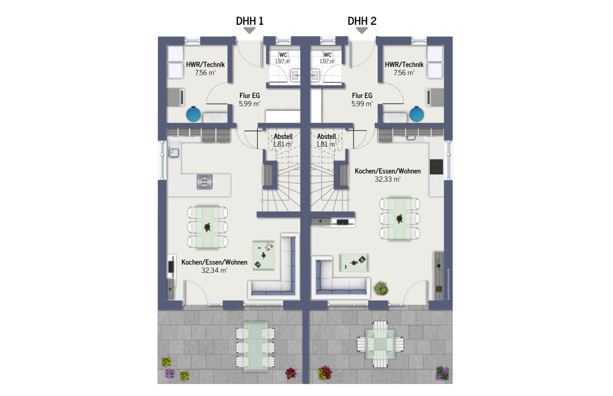 | Doppelhaushälfte 1 ohne Keller | ca. 127 m² Wohnfläche und ca. 234 m² Grund, inkl. Einzelgarage und Stellplatz | 549.500,00 € |