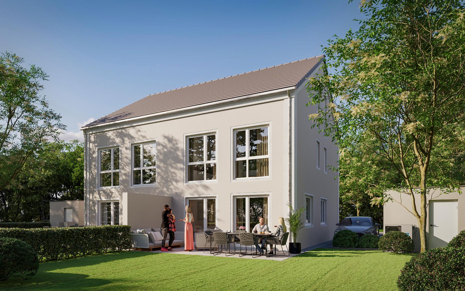 | Doppelhaushälfte 2 ohne Keller | ca. 126 m² Wohnfläche und ca. 244 m² Grund, inkl. Einzelgarage und Stellplatz | 552.500,00 € |